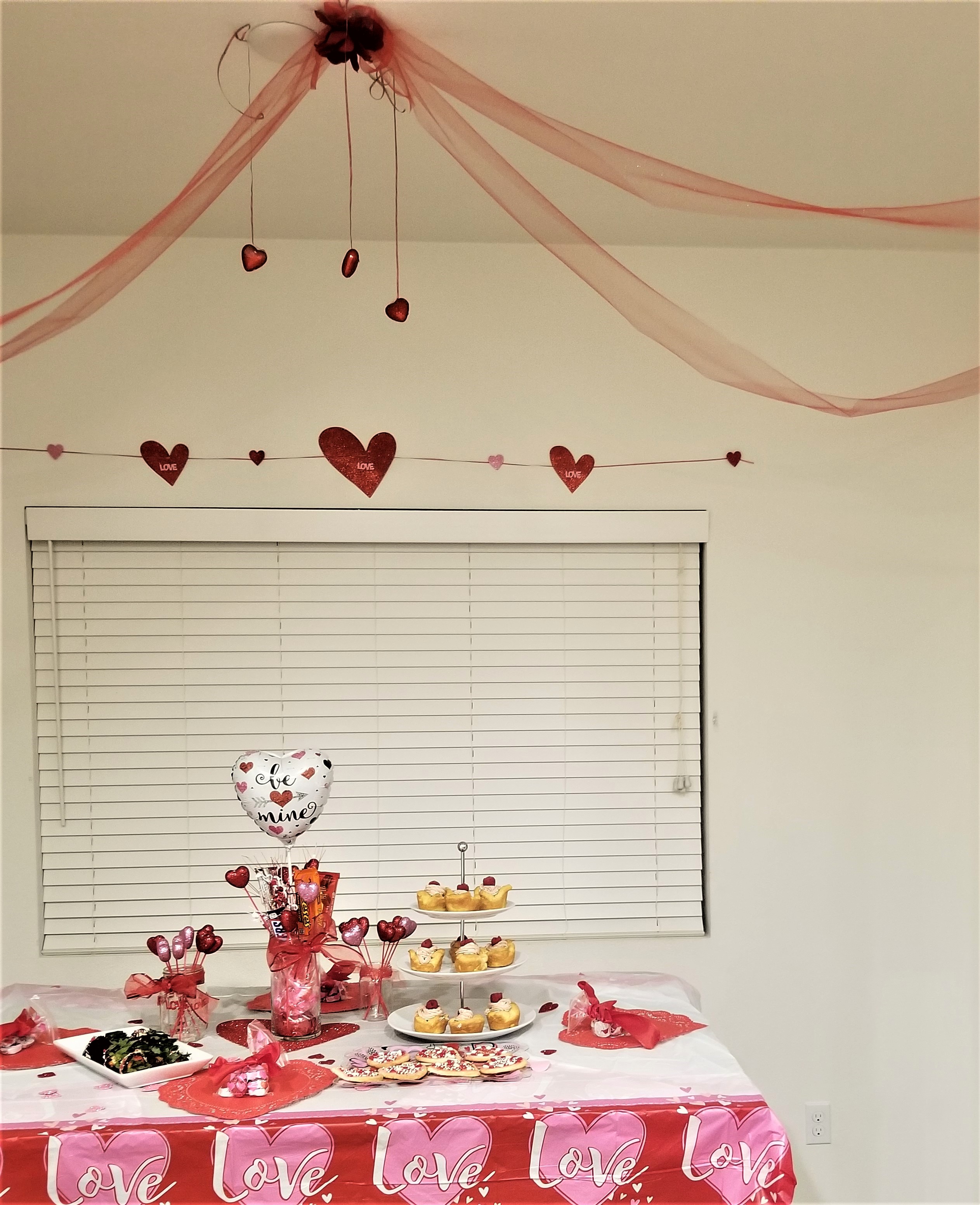 Lastly, if you want to create additional Valentine decorations, string sparkly red tulle across your ceiling and use a fake red rose as your focal point along with hanging foam glitter hearts. Hope you find these ideas helpful! Have a wonderful Valentine’s Day party with your friends, family, and loved ones!